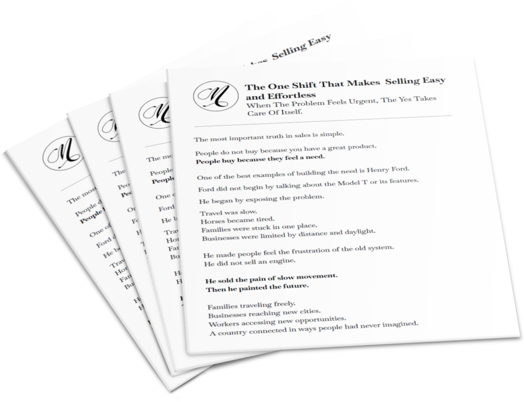Most business owners don’t struggle to sell because of their product—they struggle because prospects don’t feel an urgent need. This PDF shows the simple shift that makes selling natural: build the need before the solution. Once someone feels the cost of staying the same, the “yes” becomes easy.